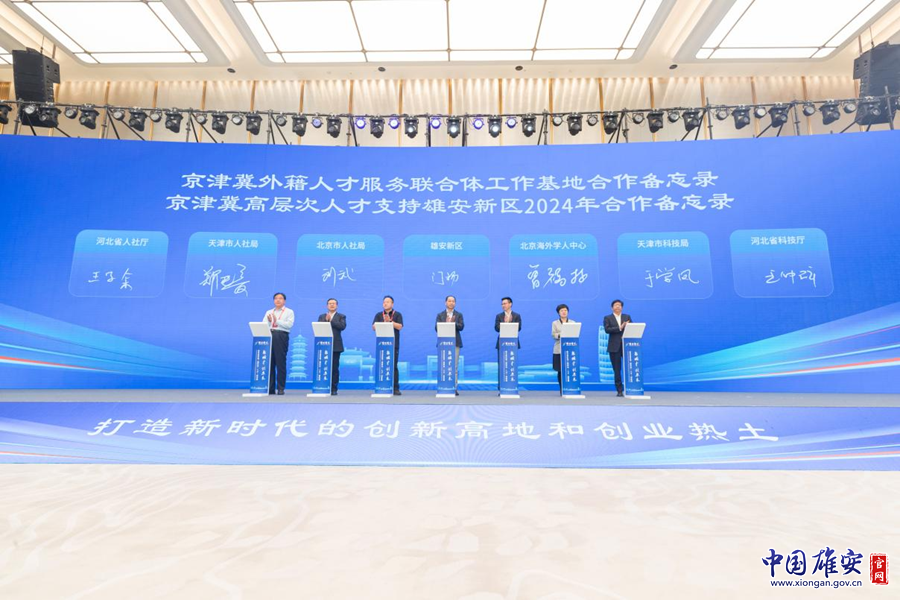 中国雄安官网5月13日电 为深入贯彻落实京津冀协同发展战略,加强京津冀人社部门在高层次人才领域的合作与交流,持续深化京津冀高层次人才支持雄安新区新质生产力发展,5月12日,雄安新区第二届科技·人才·创新周启动活动上,京津冀三地人社部门与雄安新区党工委管委会共同签署《京津冀高层次人才支持雄安新区2024年合作备忘录》。