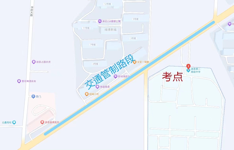2.雄县第二高级中学:菜园路口西至绿港小区路段