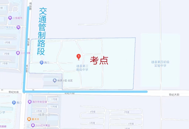 3.雄县第三高级中学:盛唐小区东门至世纪大街与将台路交叉口