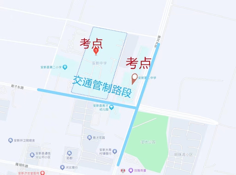 1.雄县第一高级中学:文昌大街东关路口至温泉路与文昌大街交叉口
