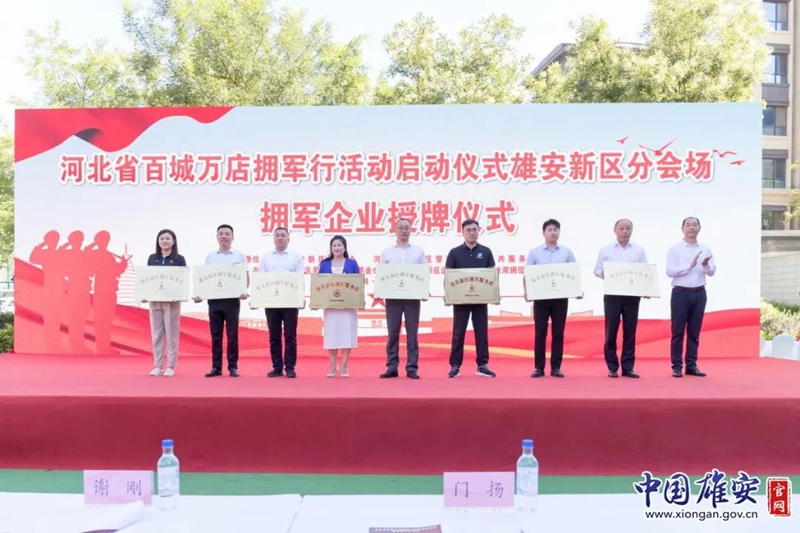 雄安新区相关负责同志为拥军服务站(点)授牌。中国雄安官网李鑫 摄