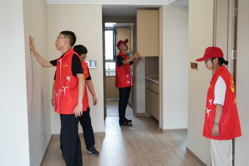 回迁,承载着百姓安居之盼、乐业之需。雄安新区党政办公室、纪工委、质安中心等单位志愿者深入容西片区对口包联社区,开展“悦容行动——用心服务验新房”志愿服务活动,联合社区工作者对照清单协助验房检查。志愿者们对室内卧室、客厅等关键位置进行查验,确保让回迁群众住上放心房、舒心房。