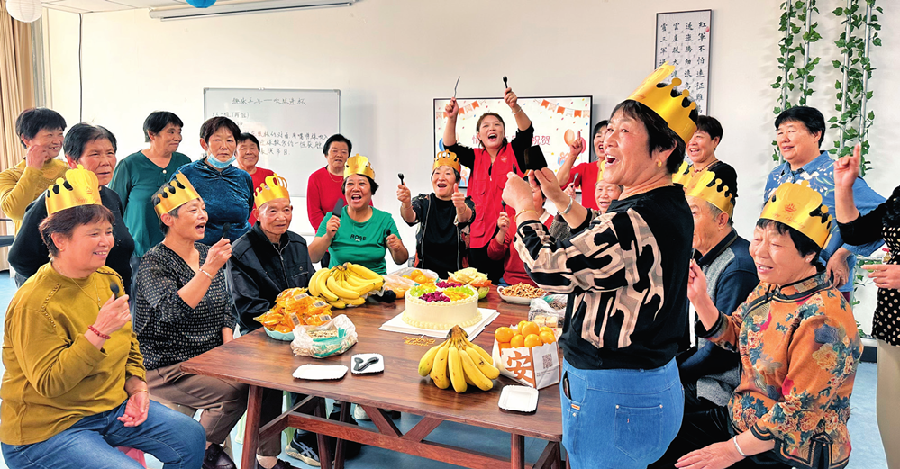 容西第一养老驿站为老年人庆祝集体生日(2023年10月)。刘艳华摄