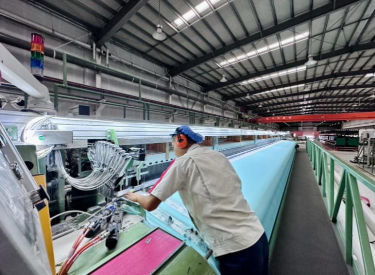 此后,公司每年都会拿出营收的3%到5%,用于研发和技改,恒温车间、研发中心、专家团队等相继落地;2022年,公司更是投入1.4亿元购进了9台(套)国际最先进的聚酯网专用生产设备。