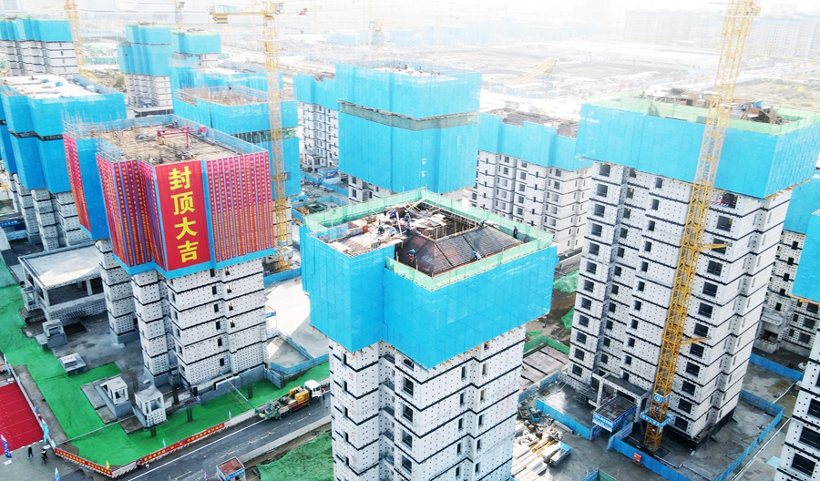 11月16日,雄安新区启动区滨水商业商务区中绿里项目主体结构封顶。河北日报记者刘光昱 摄