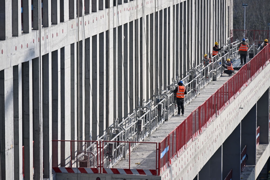 12月6日,中建三局工人在雄安科创中心二期项目建设现场施工。