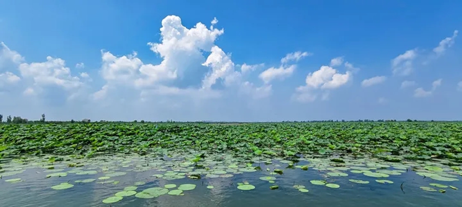 泛舟白洋淀,天蓝水清莲叶绿(8月6日摄)。新华每日电讯记者苏凯洋 摄