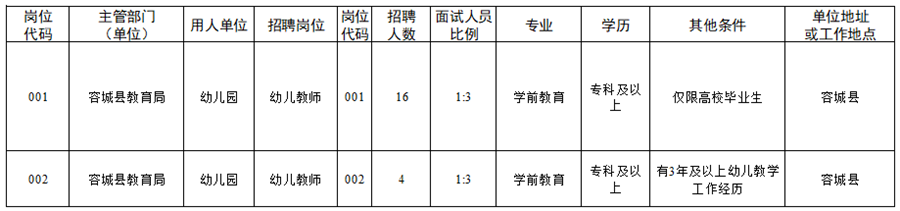 附件:容城县2024年公开招聘人事代理幼儿教师岗位条件表