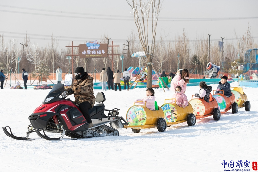 冰雪王国内,不仅有惊险刺激的滑道,还为小朋友们准备了雪地坦克、雪地转转、油桶小火车等10余项游乐项目。除了游乐项目外,还提供了丰富的打卡体验区,让游客在雄安也能体验到置身雪乡的乐趣。