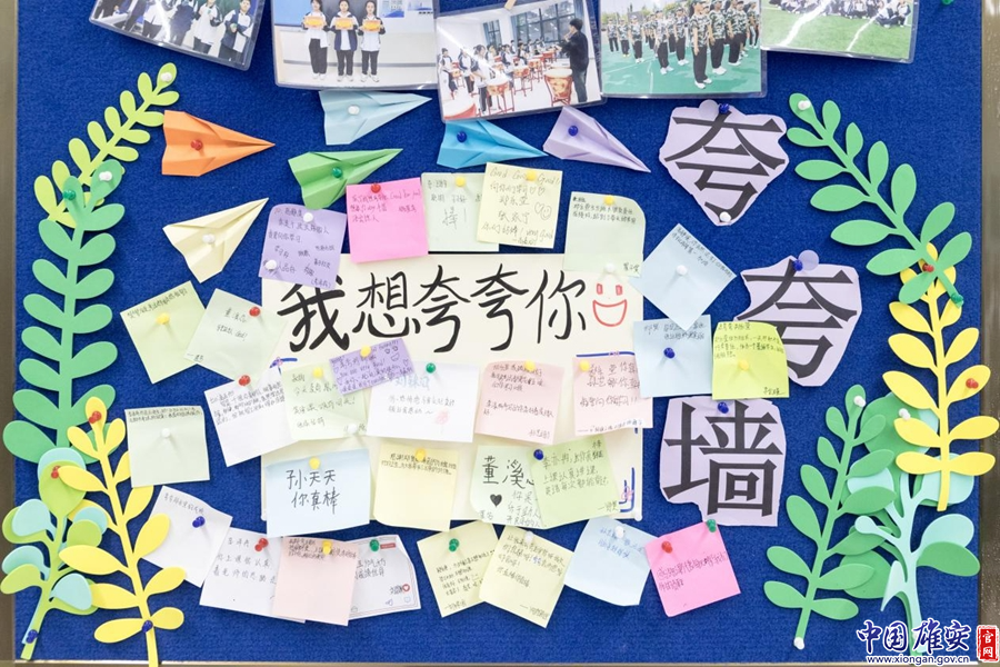 此外,学校还设置了“夸夸墙”,学生和老师都可以将想夸的人和话写在便签纸上,贴在“夸夸墙”上。“刘锦涵,你热情地与我交往真的很让我感动”“孙天天,你真棒!”“樊梦凝,考试进步看出她很努力”……一句句夸赞让这面“夸夸墙”格外耀眼。