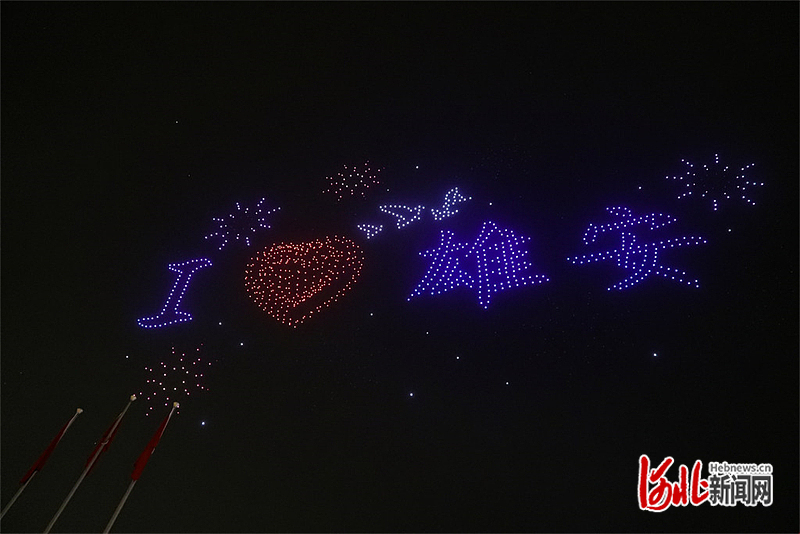 1月18日晚,“舞动星空”无人机表演在雄安会展中心南广场上空举行。河北日报记者李畅 摄