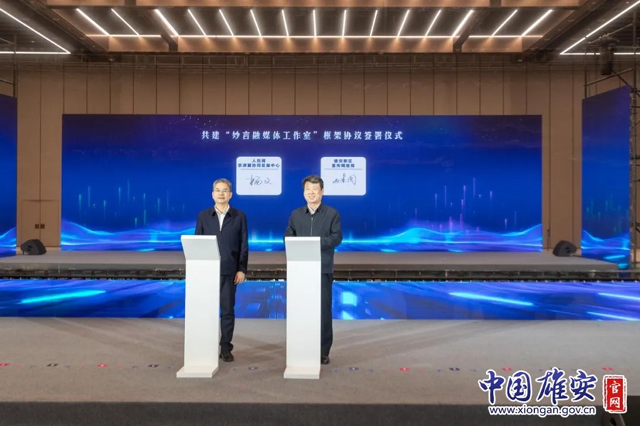 共建“妙言融媒体工作室”框架协议签署现场。中国雄安官网牛思佳 摄