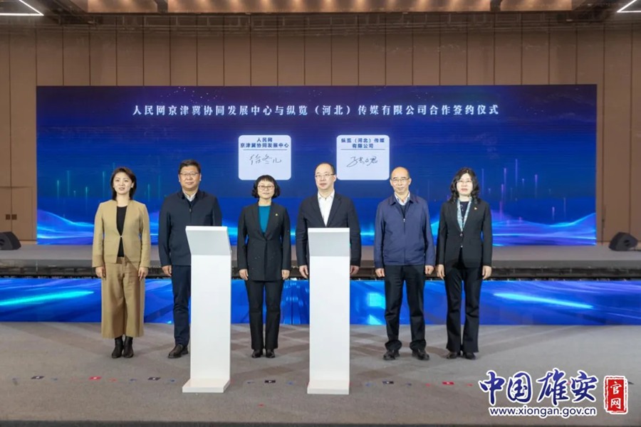 人民网京津冀协同发展中心与纵览(河北)传媒有限公司签署合作协议。中国雄安官网牛思佳 摄
