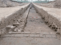 古州城址为“内城”“外城”双重城址结构,“内城”平面形状呈长方形(800×900米);“外城”平面形状呈圆角方形(1500×1500米)。“外城”南城墙保存相对较好,城墙高出现地表5—8米,底宽23米,据梳理文献编年并结合考古成果初步推断: “内城” 为汉唐时期鄚州县(州)城,魏晋隋唐一直延续使用,五代至北宋初因水患或军事目的而废弃; “外城”应为唐末五代增建而成,在其东南部发现一组中晚唐时期大型建筑基址,凸显了古州城作为晚唐五代白洋淀地区政治、经济、军事区域中心的重大学术价值。在城址东南部发现了6处战汉瓮棺墓葬,部分墓葬燕文化特征明显,同时还出土了汉唐时期砖、瓦、瓦当、 陶瓷器、铜钱等100余件。