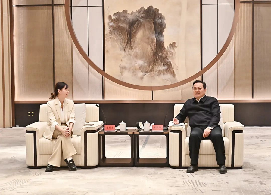张国华与新加坡叶水福集团业务总监董蘋慧一行举行工作座谈。刘向阳摄