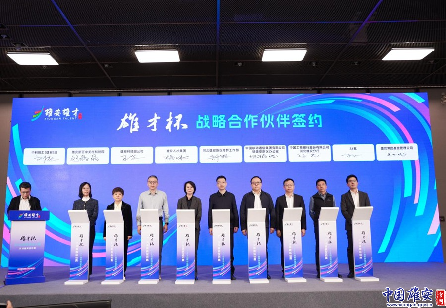 启动仪式上,雄安新区党群工作部、工信科技数据局相关负责同志分别介绍“雄才杯”创新创业大赛相关要求和雄安人才、产业政策。雄安新区党群工作部与雄安人才发展集团、雄安科学园公司、雄安新区中关村科技园、中科智汇(雄安)园、中国移动通信集团有限公司驻雄安新区办公室、中国工商银行河北雄安分行、36氪、雄安集团基金公司等8家单位签订雄才杯战略合作伙伴协议。随后,与会领导共同宣布“雄才杯”2025创新创业大赛启动。