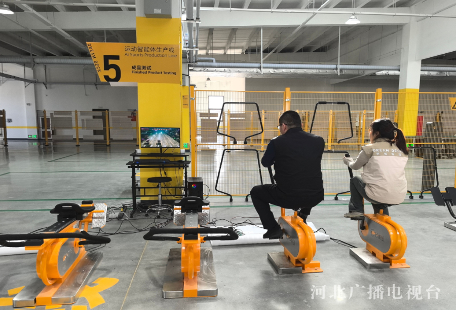 甲板科技在中试基地现有的四条生产线各有侧重。工人根据图纸把显示屏、算力盒子、电路板、传感器等等组合到一起。走进运动智能体生产线,李长霖演示起AI智慧骑行、划船机、椭圆仪、平衡木等产品的玩法来驾轻就熟。他解释说,这些设备现在还没联网,一旦联网后,扫二维码还能和虚拟人交流。公司跟首都体育学院共同研发一套算法逻辑,针对20多种运动,可以锻炼不同的人体部位,互动得分也有差别。