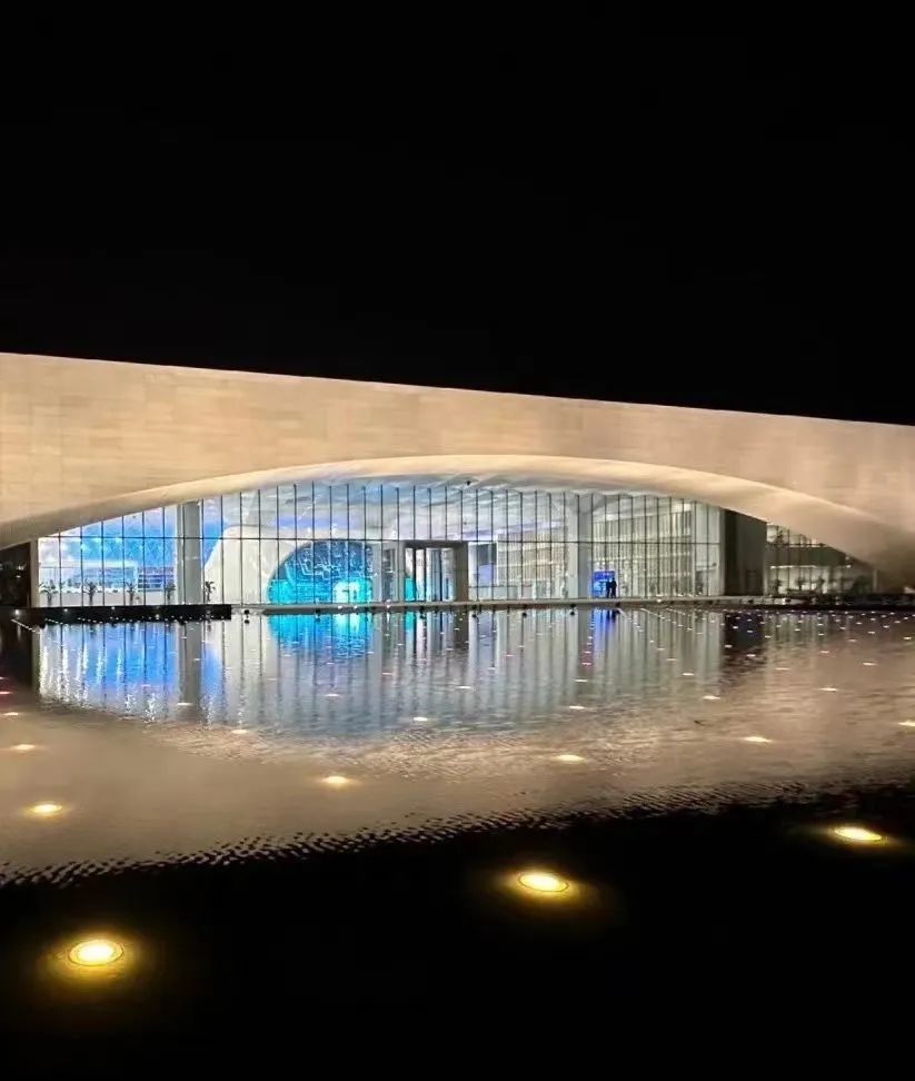 每天晚上8:30“雄安之眼”都会准时亮起,拱形的建筑东立面正门,与广场景观水面的倒影光影相融合,在夜幕之下释放出了它的无限活力。