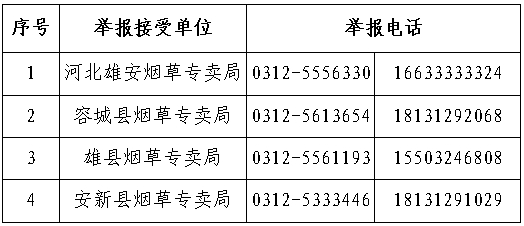 为切实维护国家利益和消费者利益,严厉打击各类涉烟违法犯罪活动,河北雄安烟草专卖局现面向社会征集涉烟违法犯罪线索。