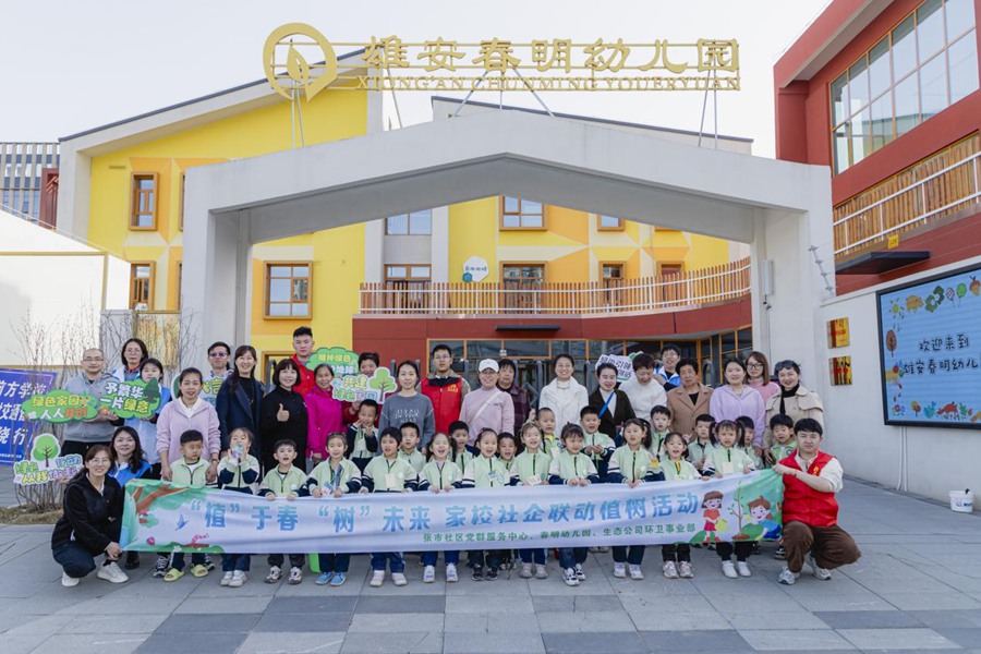 为积极探索家园社协同育人教联体发展路径,充分发挥社区、家长和幼儿园合力,3月12日,雄安春明幼儿园联合张市社区、生态建设公司开展了一场“春和景明 植此青绿”主题植树节活动。