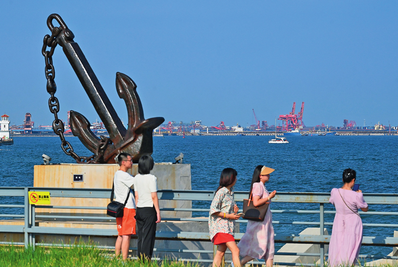 游客在秦皇岛西港花园游览(2023年8月10日摄)李铎 摄