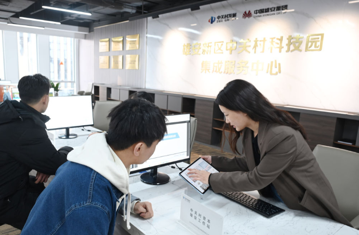 在这个“村”,设有集成服务中心,许可证打印、营业执照打印等多项业务都可以在这里高效办理。园区还提供了“多对一”服务体系——一名招商人员、一名产业服务人员、一名物业服务人员协同对接企业需求。雄安时代凌宇科技有限公司负责人谭嘉麒对此深有体会:“园区工作人员会主动协助对接符合我们的政策,让我们能轻装上阵。”