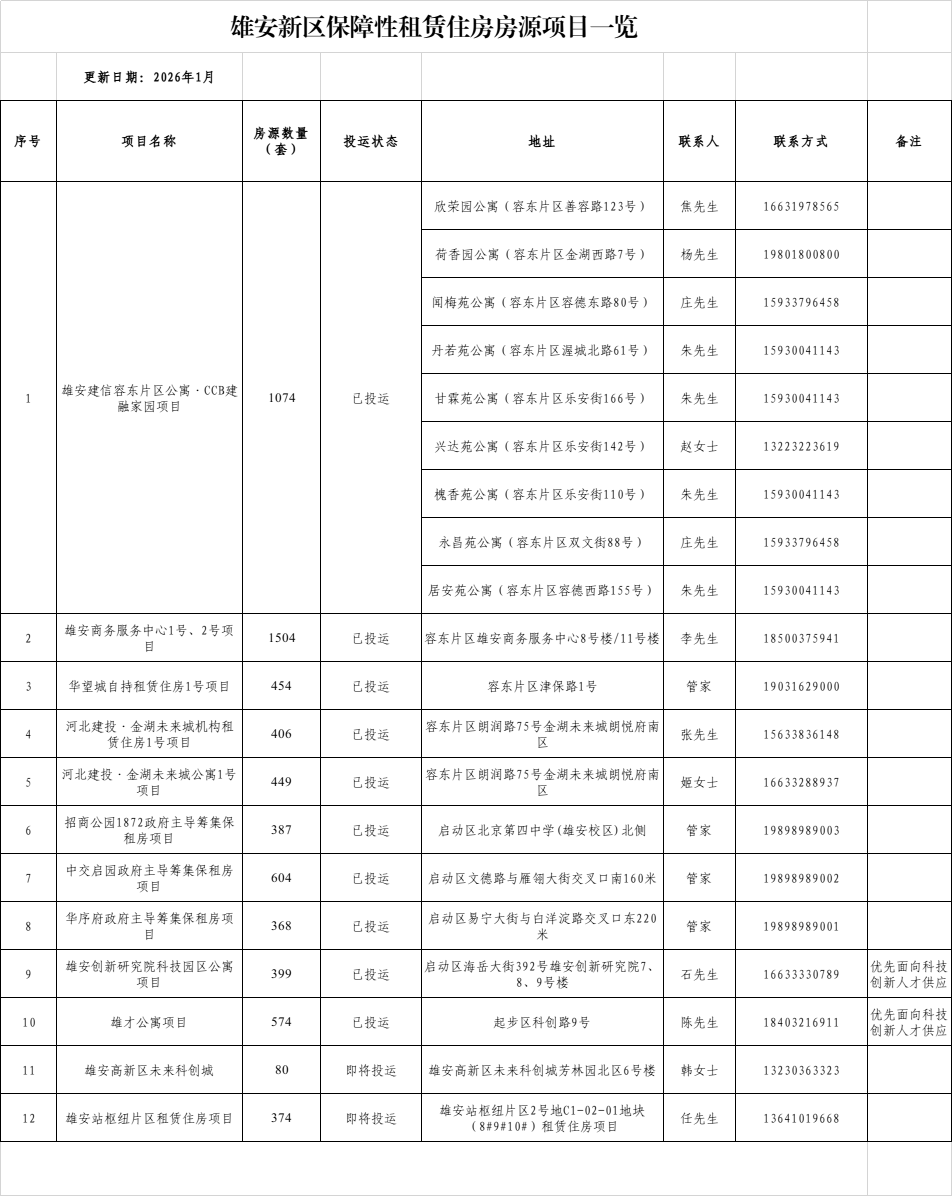 雄安新区保障性租赁住房房源一览(2026)