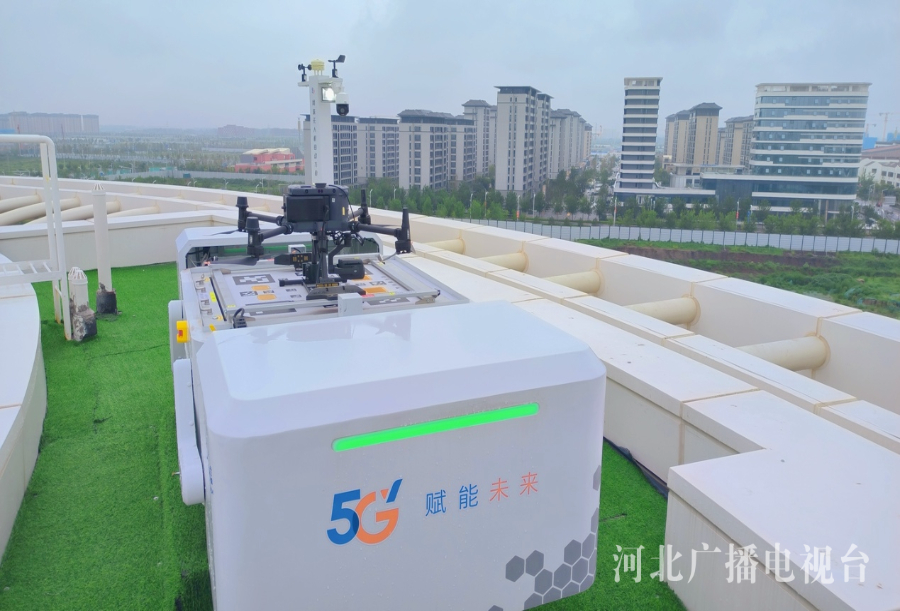 “由中国电信研发的业内首款5G网联版无人机机库,可以实现无人机的无人值守、自主充电、远程飞控以及全天候自主飞行。目前,我们在雄安新区部署了两套无人机方舱,开展了三条航线的试飞,可用在公共交通、水域治理、森林防火等方面,还可以用来送快递。”