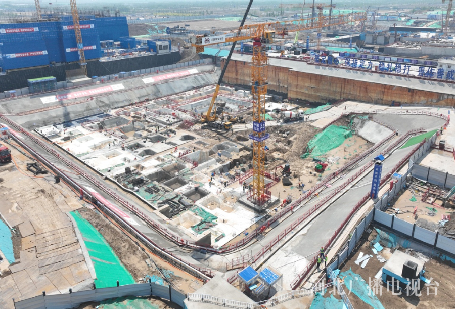 上午,在雄安新区启动区金融岛核心区域,金融岛站周边一体化开发项目建设现场,一派火热的施工景象。塔吊林立、机器轰鸣,推土机、运输车等往来穿梭,1700多名工作人员在现场施工。