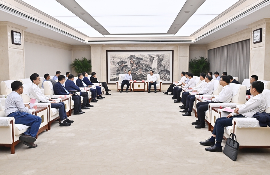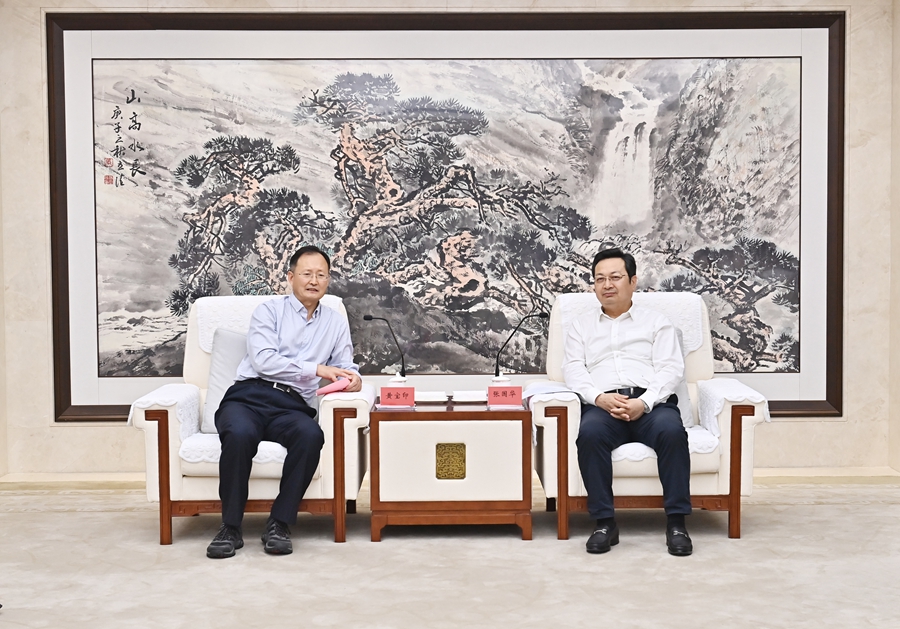 张国华与对外经济贸易大学党委书记黄宝印、校长赵忠秀一行举行工作座谈。刘向阳 摄