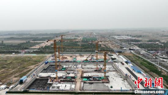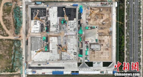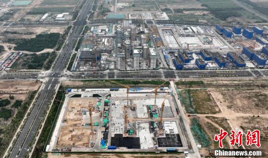 5月21日,航拍北京科技大学雄安校区第一组团项目建设现场。(无人机照片)中新社记者韩冰 摄