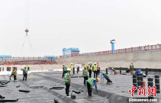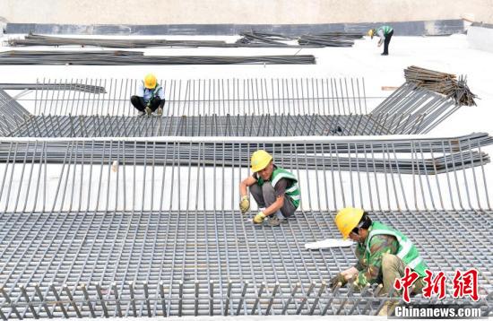5月21日,北京科技大学雄安校区第一组团项目建设现场,建设者正在进行基础底板施工。中新社记者韩冰 摄