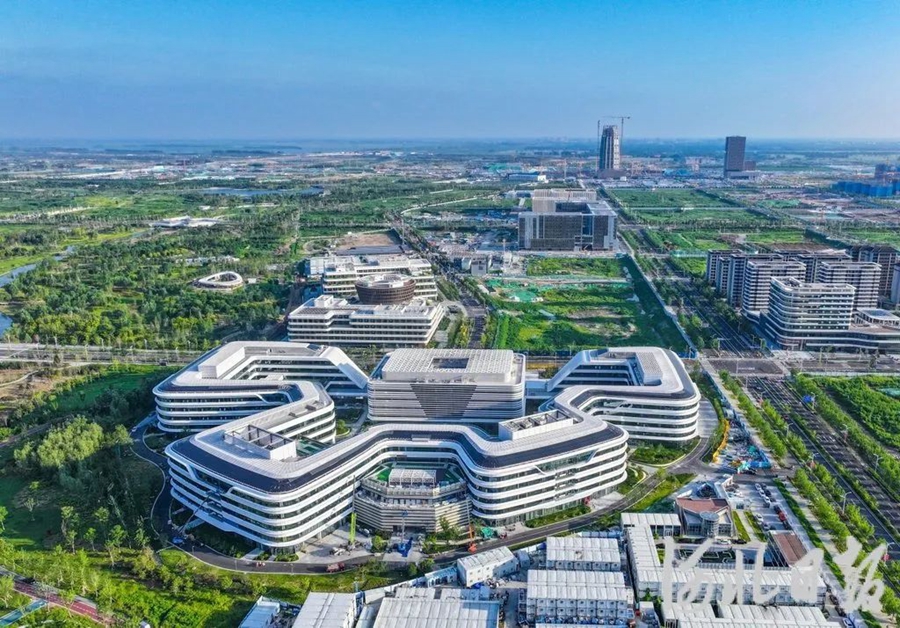 日前,无人机航拍的位于雄安新区的中国卫星网络集团有限公司总部。河北日报记者李畅 摄