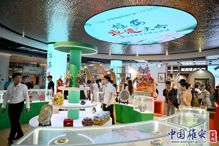 在雄安商务服务中心地下环廊,琳琅满目的京津冀非遗精品区,共汇聚了三地200余件具有代表性且与现代生活融合紧密的传统技艺、传统美术类非遗精美作品。漫步其间,技艺精湛的北京玲珑枕、色彩华美的津派周氏风筝、精美的定兴京绣……一件件巧夺天工的艺术品,让游客爱不释手,营造出非遗保护成果共享的和谐氛围。