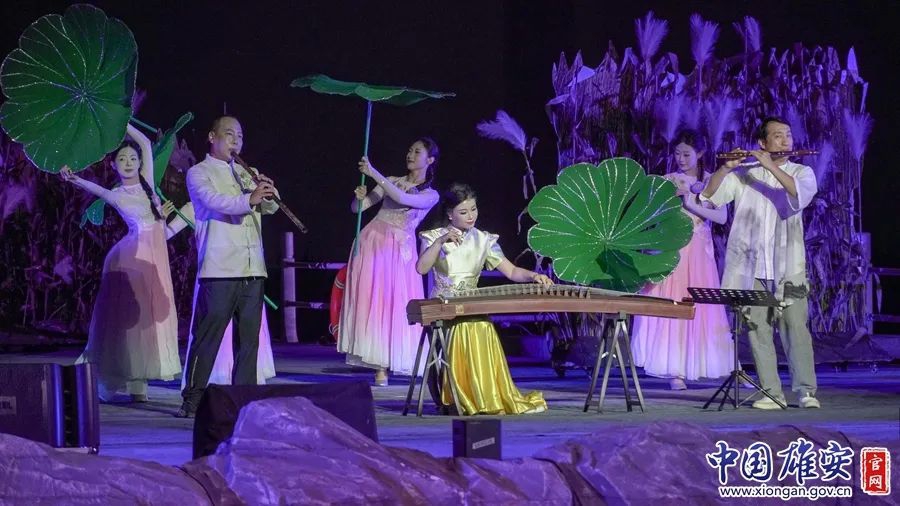 国乐舞蹈《风荷水墨》。左侧演奏者为雄安新区国家级非物质文化遗产代表性项目“安新县圈头村音乐会”代表性传承人夏满军。王梓冲 摄