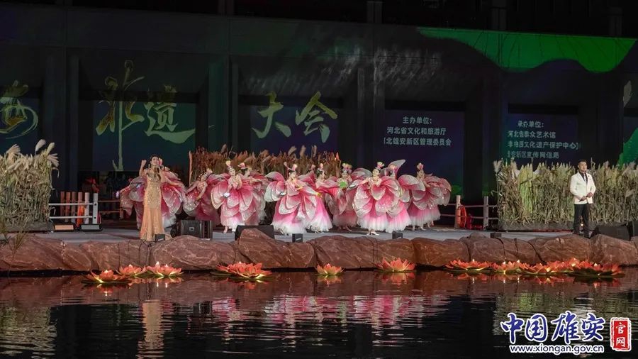 6月13日晚,非遗展演在震撼炫目的水幕光影秀《九龙成淀》中拉开帷幕,营造出虚实相生的沉浸式场景。巧妙运用雄安商务服务中心环形水幕与楼体投影交相辉映,以现代光影技术,生动描绘了雄安“九龙戏水成巨淀”的古老传说。随后,如梦如幻的舞蹈《芦花飞扬》翩跹而至,芦苇丛装置与舞者表演完美融合,将观众带入一幅意境优美、充满诗意的“湿地芦苇画”中。