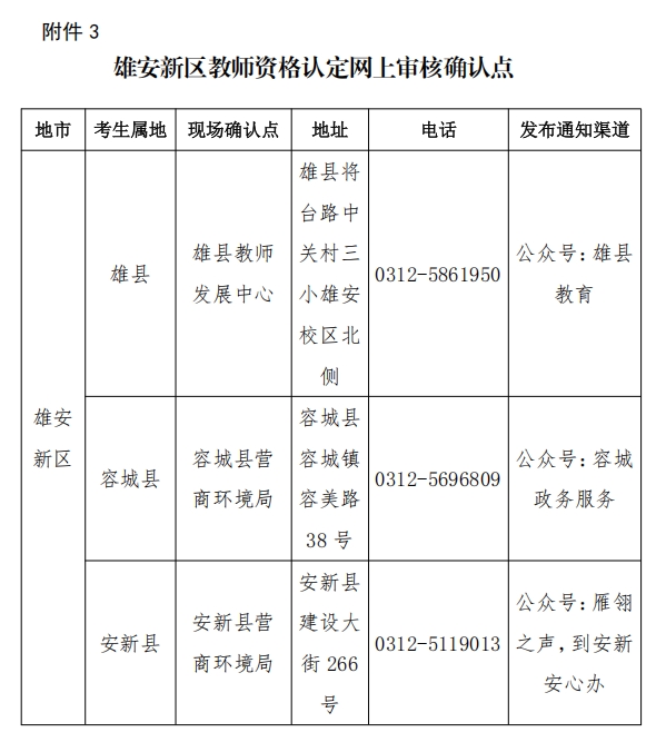 4.确认点:安新县营商环境局、容城县营商环境局,雄县教师发展中心。