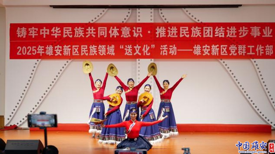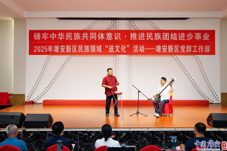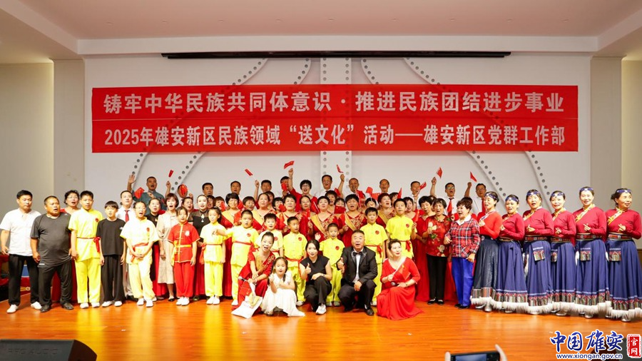 随后,“送文化”活动在藏族舞《太阳姑娘》中正式拉开帷幕。武术《鹰爪翻子拳》、河北梆子《新时代谱写新篇章》、西河大鼓《雄安民族事业展雄风》《朝阳沟选段——亲家母对唱》等一个个特色节目轮番上演,为现场观众带来了一场别具风采的文化盛宴。评剧《唱雄安》、男声独唱《淀上风光赛江南》、朗诵《我是雄安的一棵树》更是让大家在不同节目中领略到雄安建设发展的成果以及感人故事。男女二重唱《母亲是中华》、女高音独唱《我们的中国梦》、合唱《灯火里的中国》《歌唱祖国》等节目将现场的氛围一次次推向高潮,为扎实推动民族团结凝心聚力。
