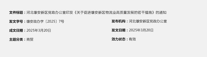 河北雄安新区党政办公室印发《关于促进雄安新区物流业高质量发展的若干措施》的通知