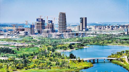 夏日的雄安新区启动区工地上一派繁忙,一个个重点项目加快建设,一座高水平现代化城市的轮廓愈发清晰。记者李东宇 摄