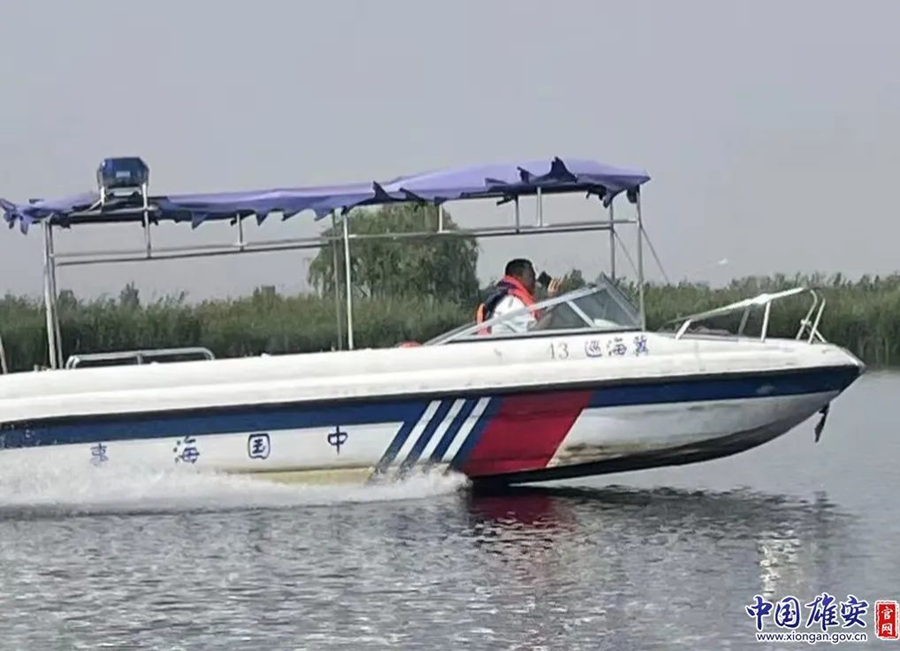 执法人员在水上巡逻。雄县县委宣传部供图