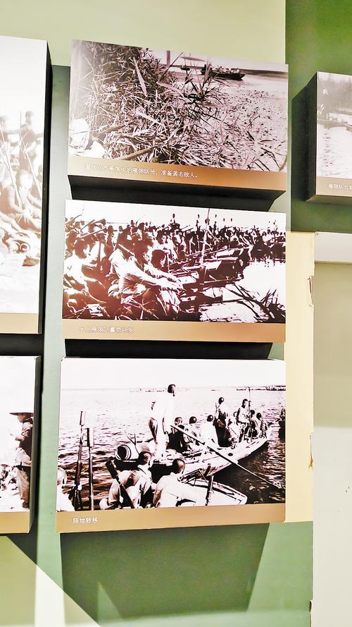 白洋淀雁翎队纪念馆内展出的照片。记者杨明静 摄