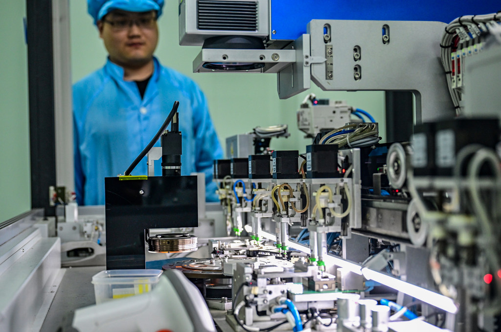 8月1日,芯昇科技公司职工在车间内检查生产线。河北日报记者李东宇 摄