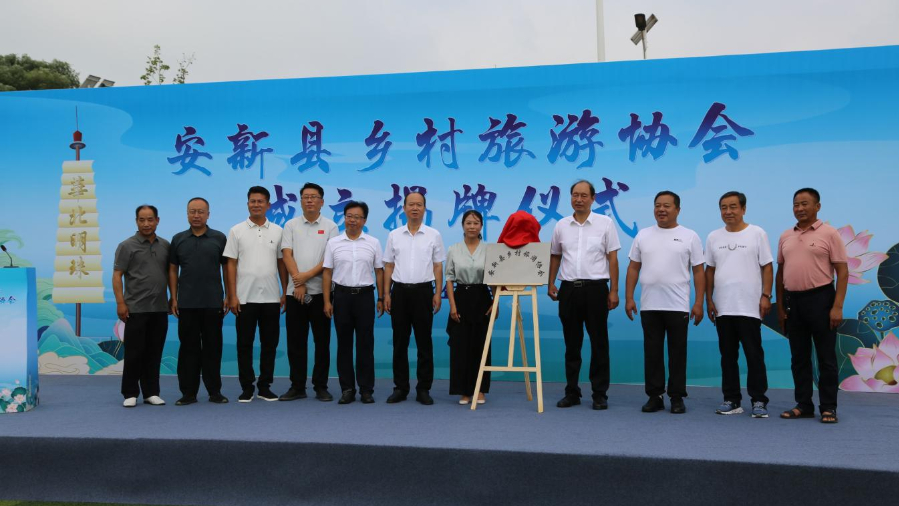 中国雄安官网8月18日电(崔利杰)8月17日上午,安新县乡村旅游协会揭牌仪式在大健康体育公园举行。涉旅科局、乡镇负责人,涉旅村党支部书记,乡村旅游协会理事会成员,“公司+农户”运营企业负责人,农家乐代表、船工代表、镇村志愿者代表等300余人参加。