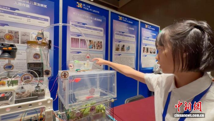 8月14日至17日,由中国科学技术协会、中国宋庆龄基金会共同主办的2025年宋庆龄少年儿童未来科学日暨第二十届宋庆龄少年儿童发明奖颁奖活动在河北雄安新区举行。图为8月16日,来自马来西亚槟城双溪里蒙光华小学的黄巧蒽为记者模拟“光能智慧田园”模型运行。李百加 摄