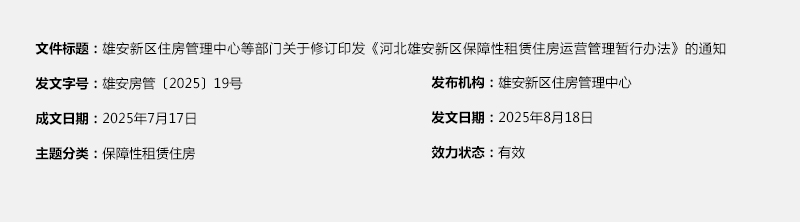 雄安新区住房管理中心等部门关于修订印发《河北雄安新区保障性租赁住房运营管理暂行办法》的通知