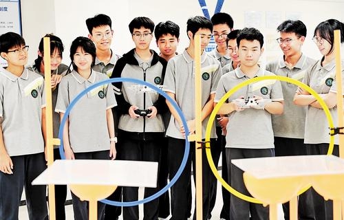 近日,雄安容和第一高级中学的学生在进行校园社团无人机比赛。记者刘光昱 摄