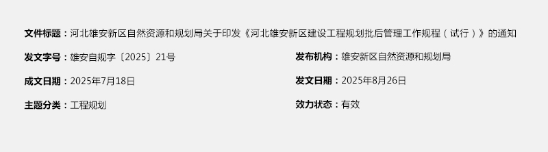 河北雄安新区建设工程规划批后管理工作规程(试行)