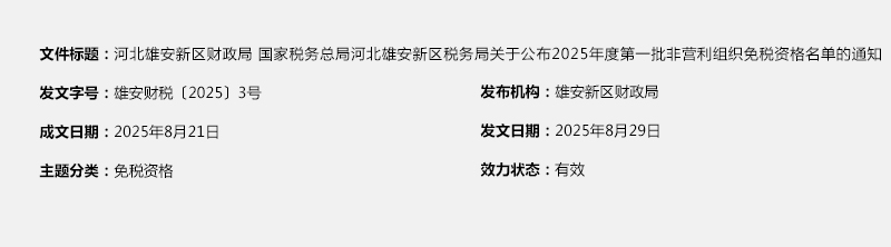 河北雄安新区财政局 国家税务总局河北雄安新区税务局关于公布2025年度第一批非营利组织免税资格名单的通知