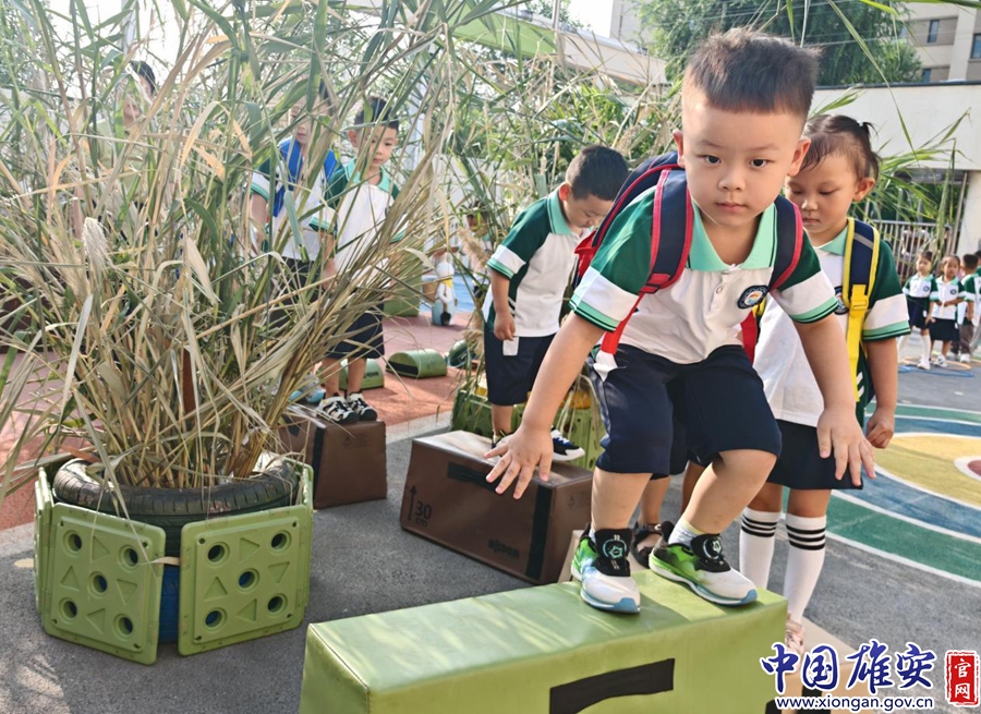 雄安容和朝晖幼儿园设置游戏环节,欢迎小朋友入园。雄安容和朝晖幼儿园供图